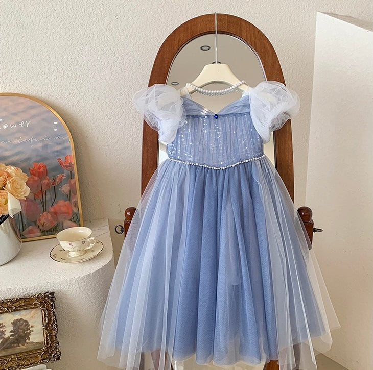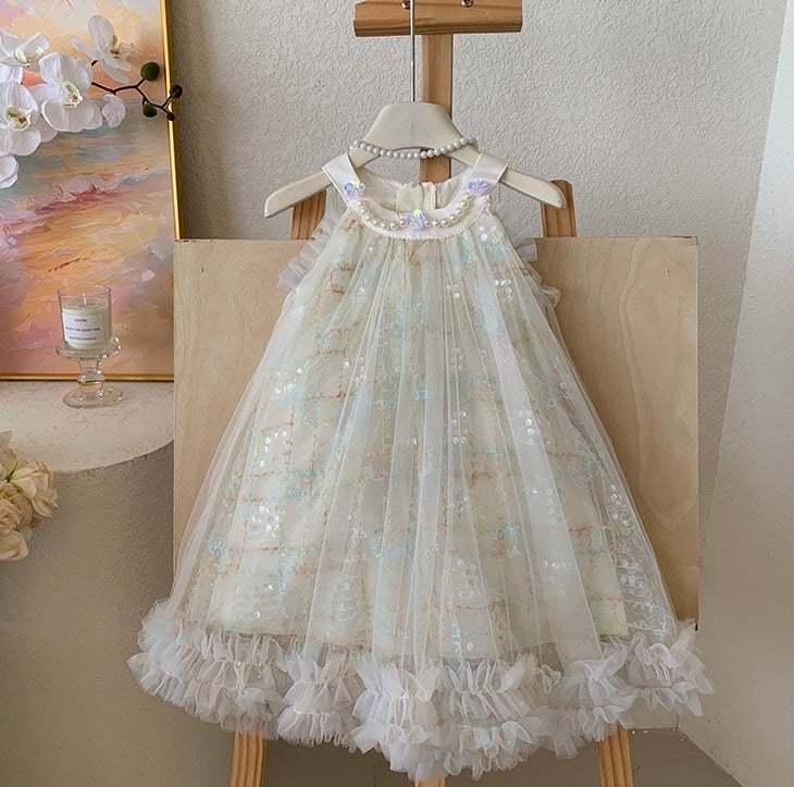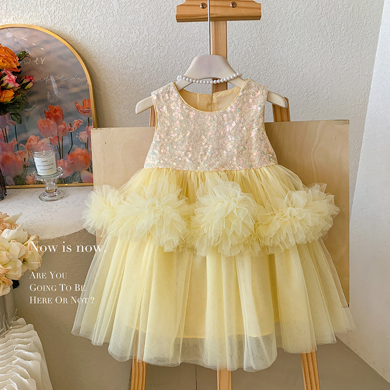 Brighten up any special occasion with this beautiful Yellow Sequin Princess Dress, designed to bring joy and elegance to your little girl's summer wardrobe.