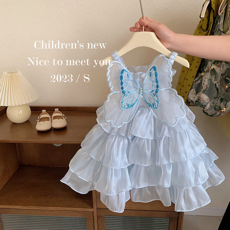 A magical white dress with shimmering fairy wings and pastel ruffle trim — perfect for birthdays, photoshoots, or special occasions. Soft tulle layers and glittering details make every little girl feel like a fairy princess.
