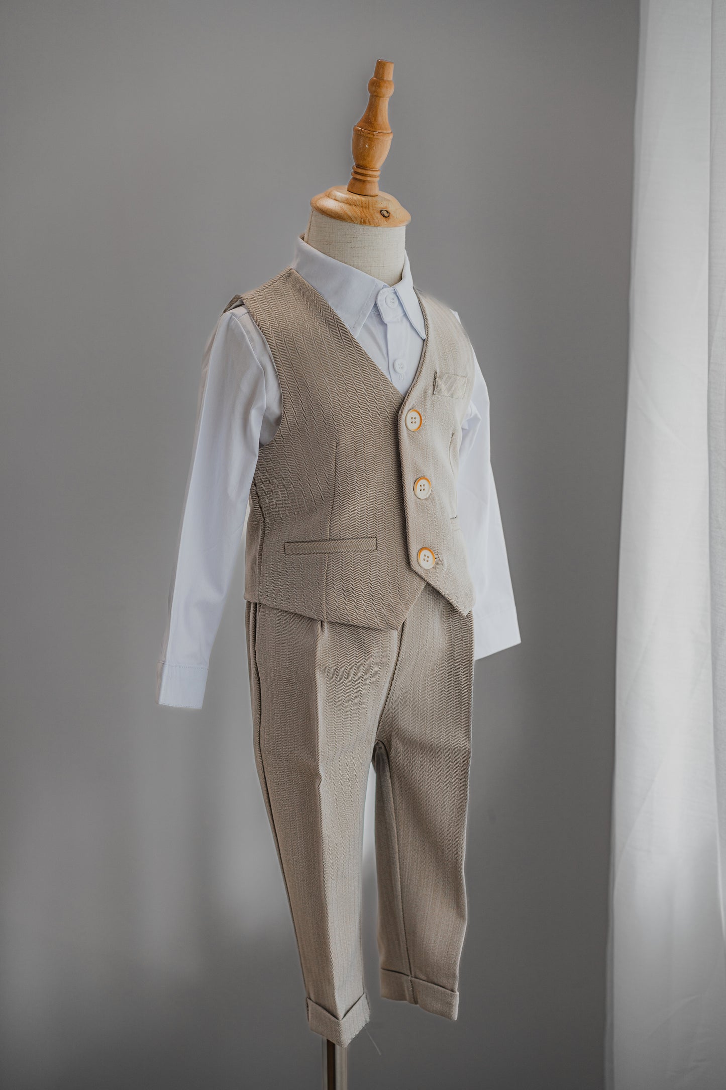 Kids Boys Formal Suit Wedding Wear 4 Pieces Set Beige